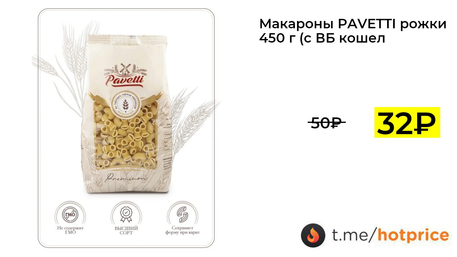 🔹 Макароны PAVETTI рожки 450 г (с ВБ кошельком) за 32₽ ❗️ (везде: 50+₽)
