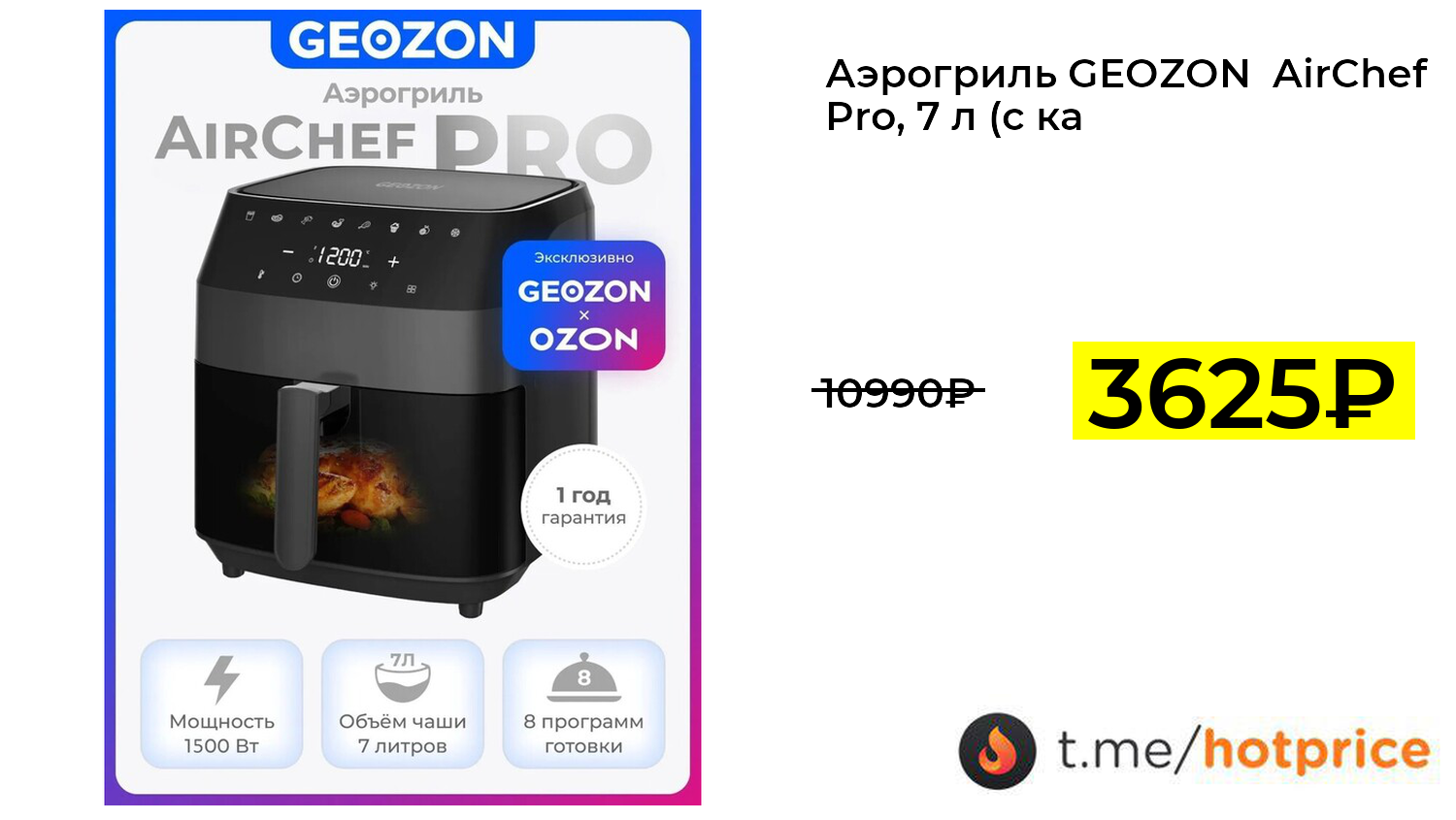 🔹 Аэрогриль GEOZON AirChef Pro, 7 л (с картой OZON) за 3625₽ ❗️ (везде: 10990+₽)