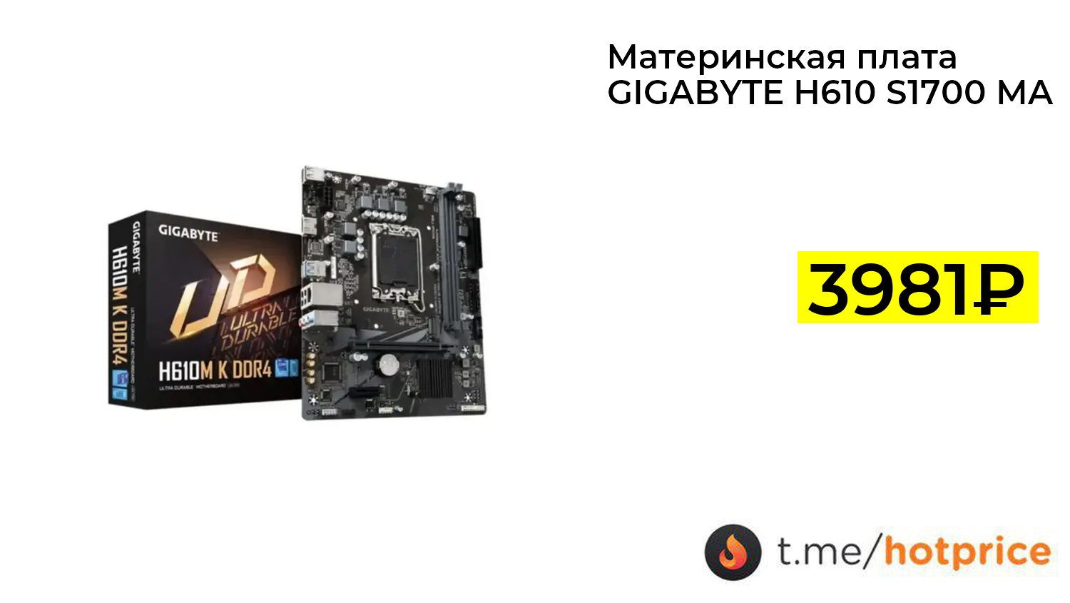 🔹 Материнская плата GIGABYTE H610 S1700 MATX H610M K DDR4 (с макс. кошельком) за 3981₽ ❗️