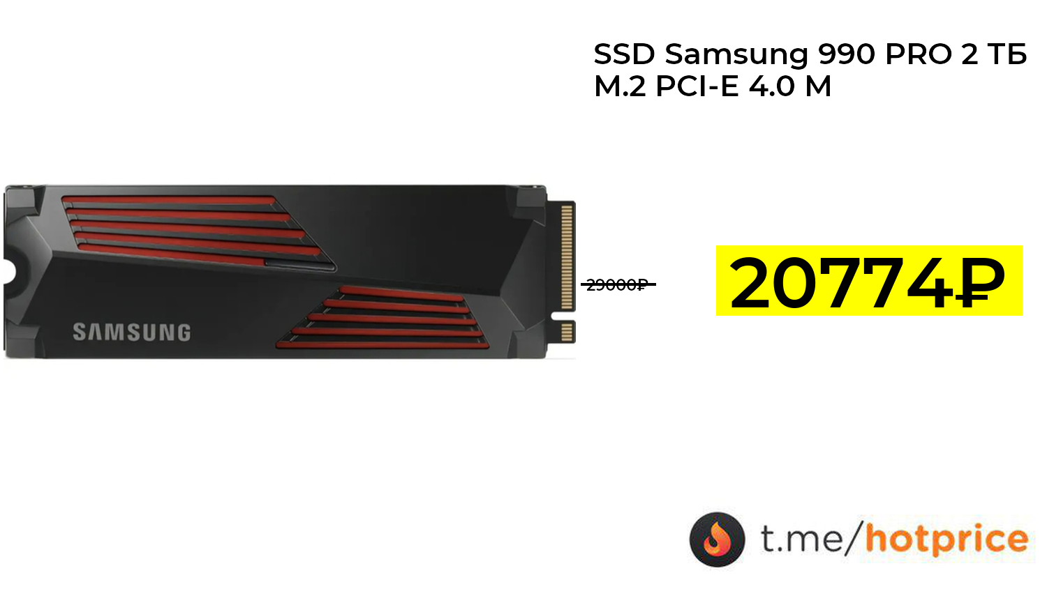 🔹 SSD Samsung 990 PRO 2 ТБ M.2 PCI-E 4.0 MZ-V9P2T0CW (с кошельком и клубом WB) за 20774₽ ❗️ (везде: 29000+₽)