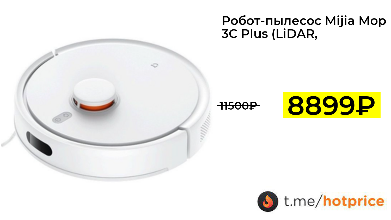 🔹 Робот-пылесос Mijia Mop 3C Plus (LiDAR, 5000 Па, сухая и влажная уборка, MiHome) за 8899₽ ❗️ (везде: 11500+₽)