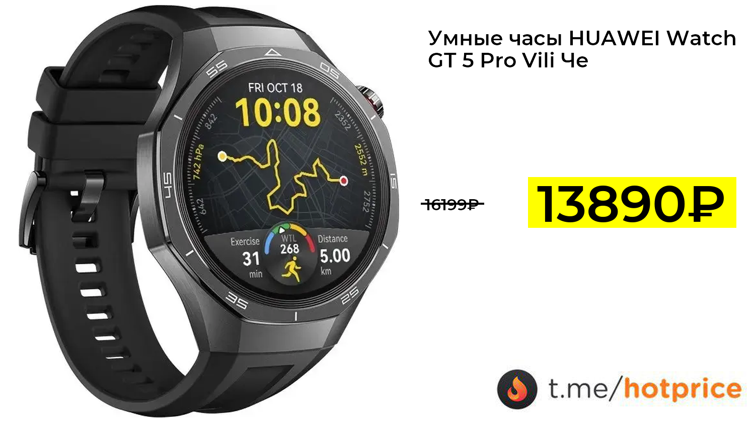 🔹 Умные часы HUAWEI Watch GT 5 Pro Vili Черные за 13890₽ ❗️ (везде: 16199+₽)