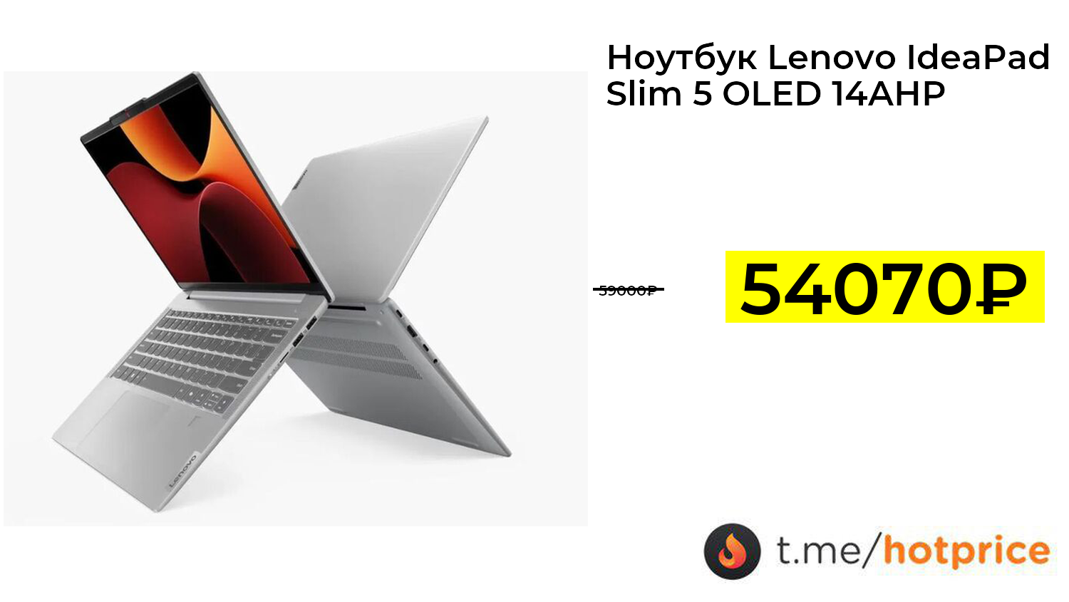 🔹 Ноутбук Lenovo IdeaPad Slim 5 OLED 14AHP9 14", AMD Ryzen 5 8645HS, 16/1024 ГБ (с макс. кошельком) за 54070₽ ❗️ (везде: 59000+₽)