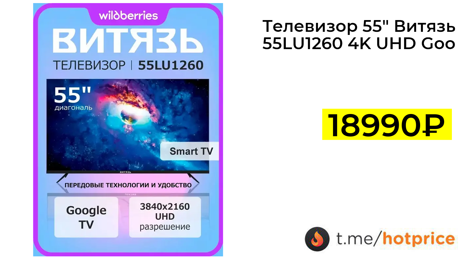 🔹 Телевизор 55" Витязь 55LU1260 4K UHD Google TV (с макс. кошельком) за 18990₽ ❗️