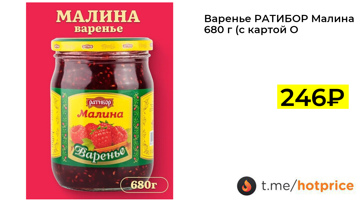 🔹 Варенье РАТИБОР Малина 680 г (с картой OZON) за 246₽ ❗️