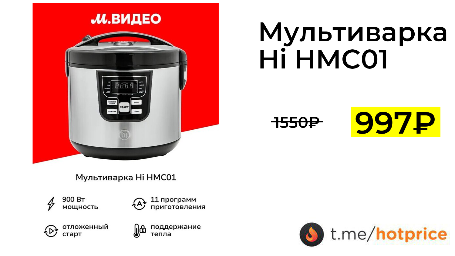 🔹 Мультиварка Hi HMC01 (с Ozon картой) за 997₽ ❗️ (везде: 1550+₽)