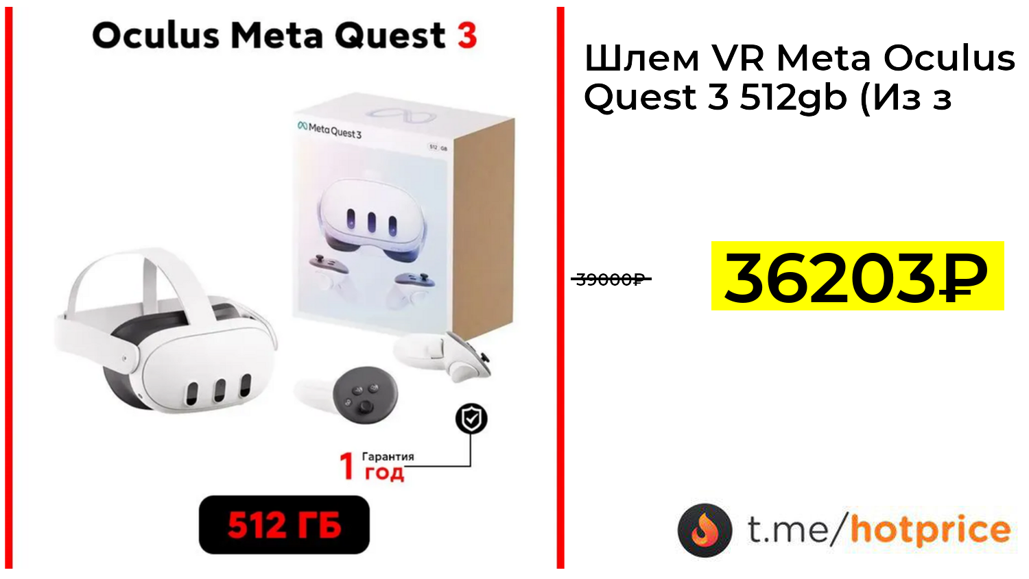 🔹 Шлем VR Meta Oculus Quest 3 512gb (Из за рубежа, по карте Ozon) +пошлина 3851₽ за 36203₽ ❗️ (везде: 39000+₽)