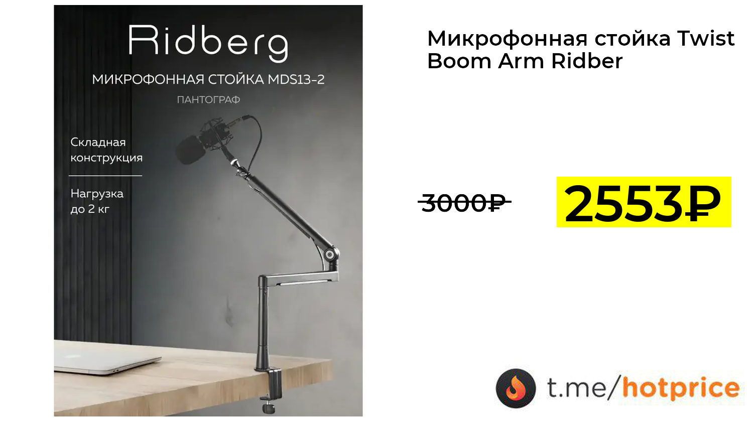 🔹 Микрофонная стойка Twist Boom Arm Ridberg за 2553₽ ❗️ (везде: 3000+₽)