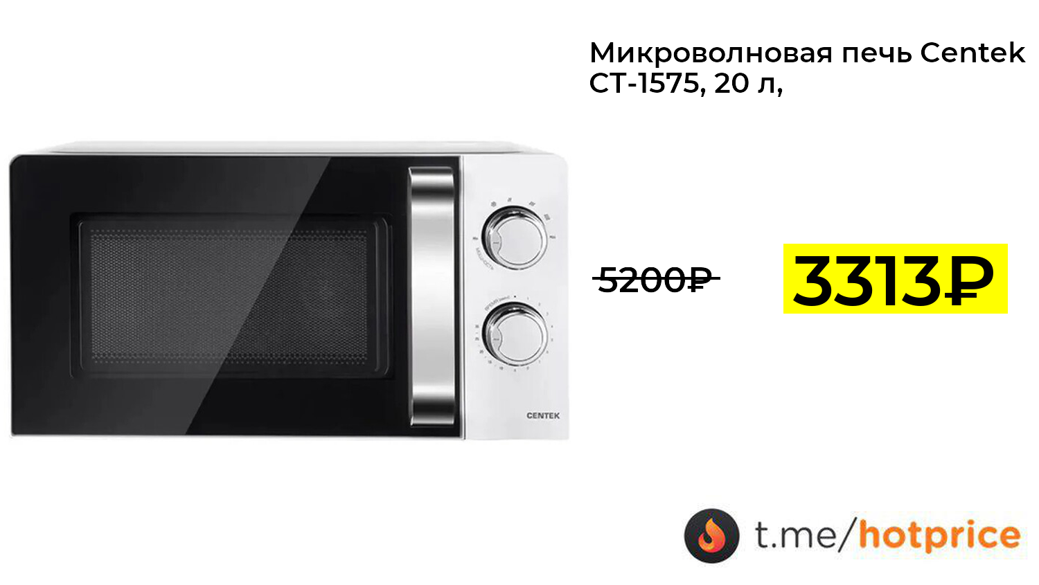 🔹 Микроволновая печь Centek CT-1575, 20 л, 700 Вт (с ВБ кошельком, с подпиской) + 200 бонусов за отзыв за 3313₽ ❗️ (везде: 5200+₽)