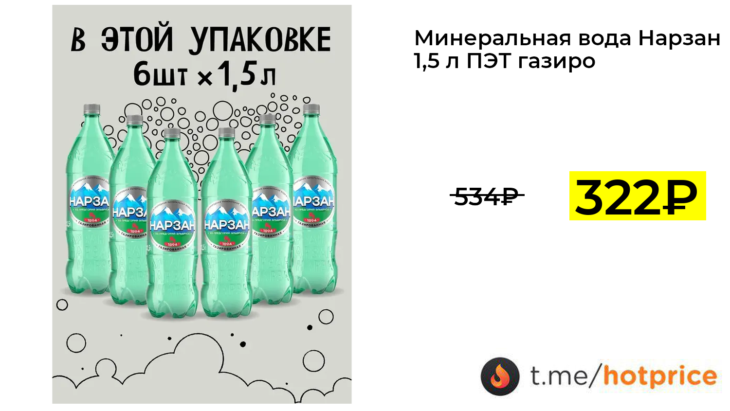 🔹 Минеральная вода Нарзан 1,5 л ПЭТ газированная 6 шт. (с картой OZON и бонусами) за 322₽ ❗️ (везде: 534+₽)