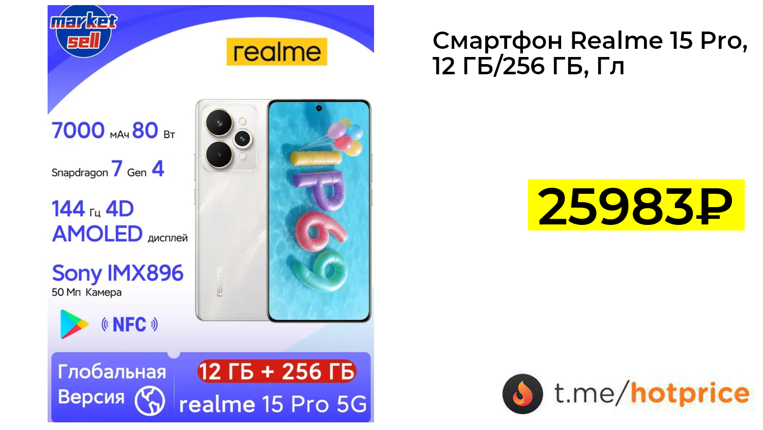 🔹 Смартфон Realme 15 Pro, 12 ГБ/256 ГБ, Глобальная версия, Snapdragon 7 Gen 4, IP69, NFC, серебристый цвет