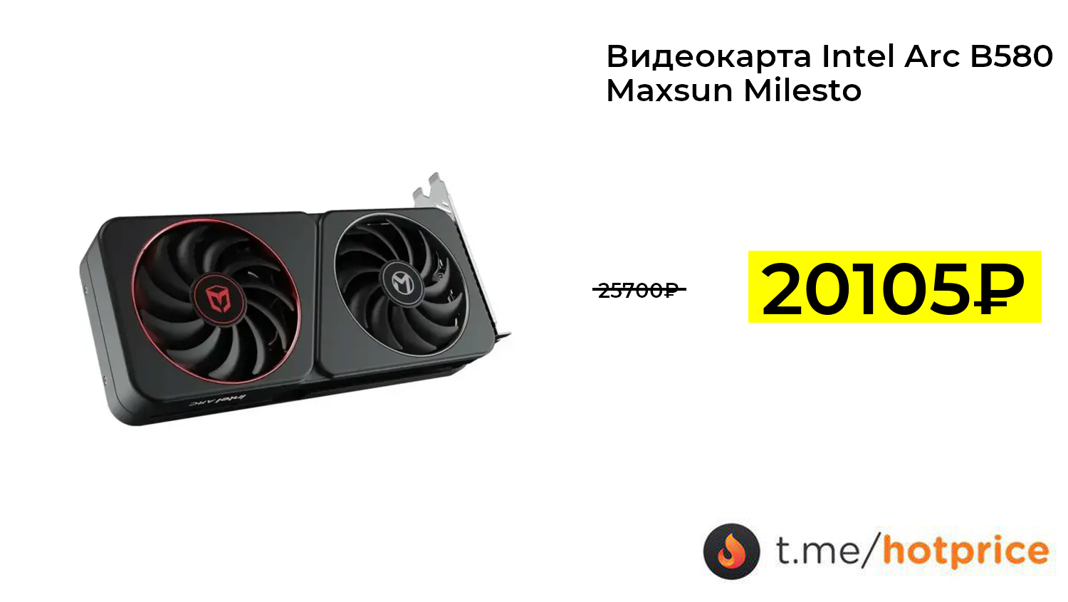 🔹 Видеокарта Intel Arc B580 Maxsun Milestone 12G (с кошельком wb) за 20105₽ ❗️ (везде: 25700+₽)