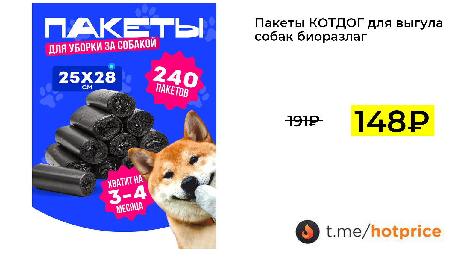 🔹 Пакеты КОТДОГ для выгула собак биоразлагаемые маленькие 240 шт (с картой OZON) за 148₽ ❗️ (везде: 191+₽)