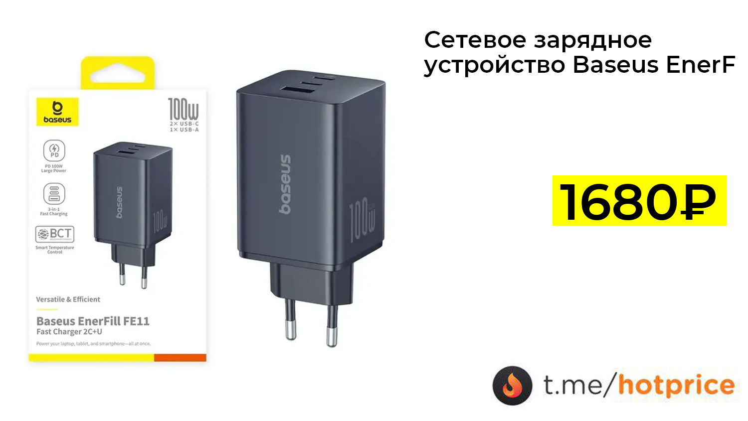 🔹 Сетевое зарядное устройство Baseus EnerFill FE11 Fast Charger 2C+U 100W (с картой OZON) за 1680₽ ❗️