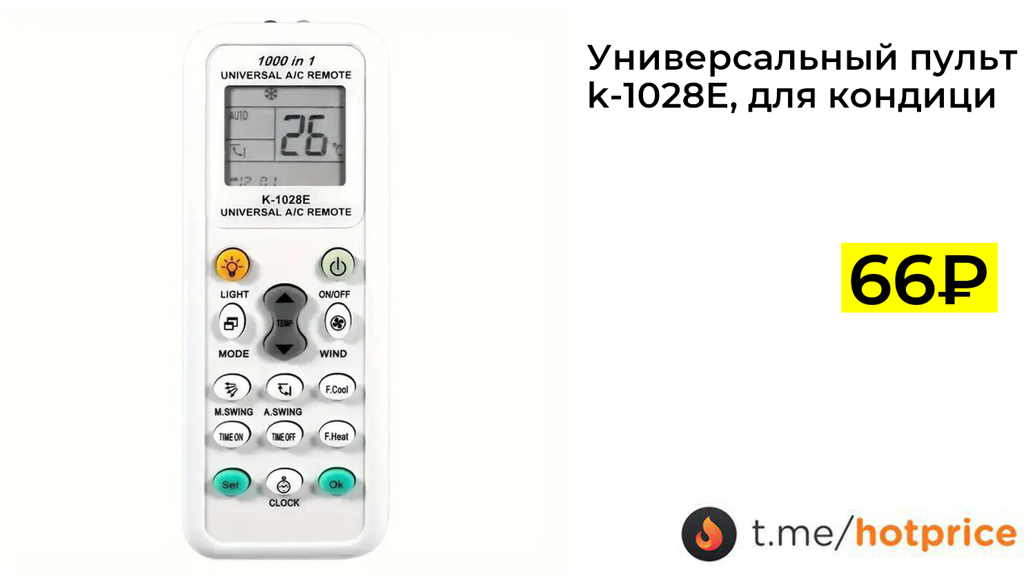 🔹 Универсальный пульт k-1028E, для кондиционеров (из-за рубежа, с картой OZON) за 66₽ ❗️