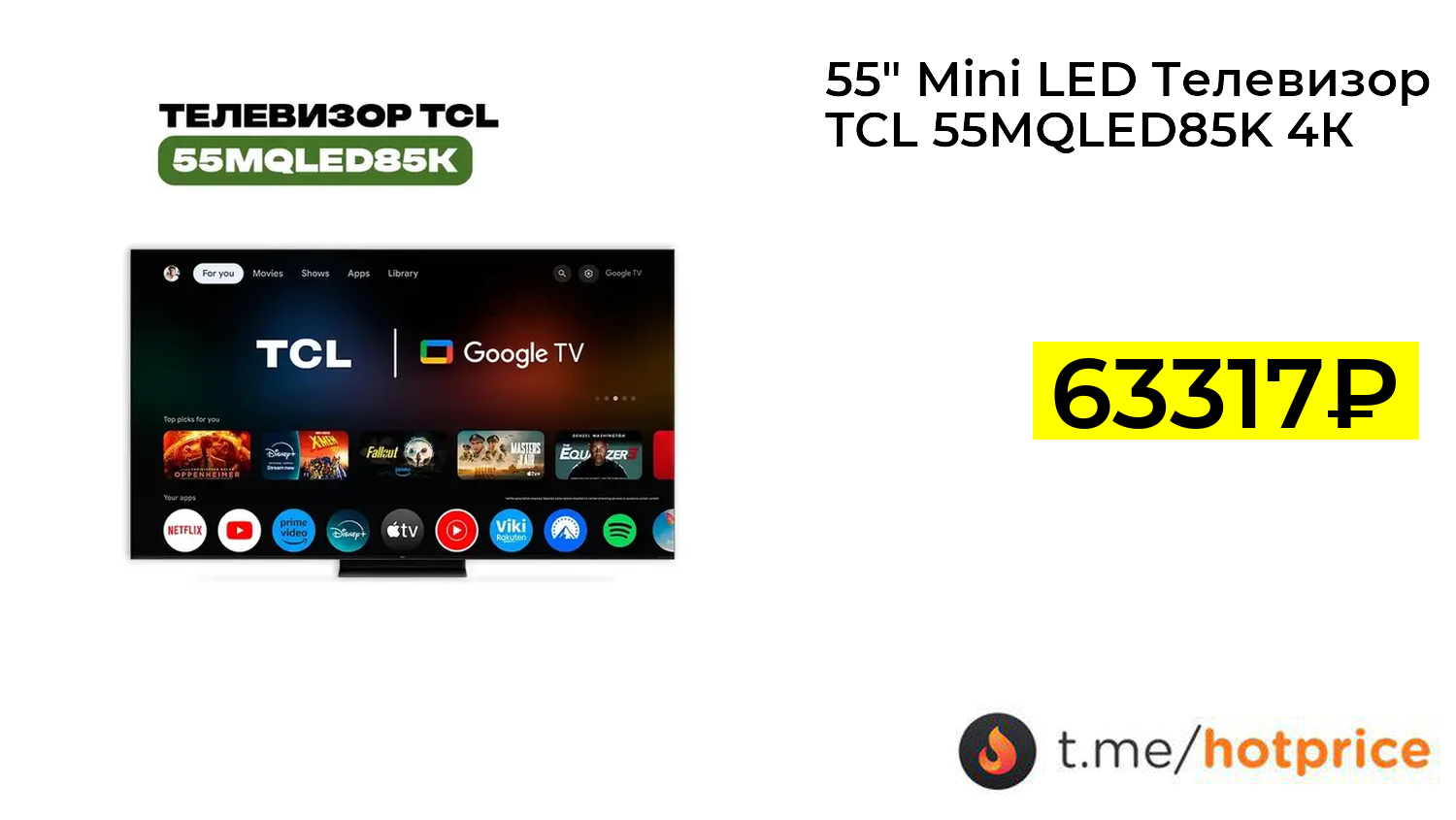 🔹 55" Mini LED Телевизор TCL 55MQLED85K 4К (с ВБ кошельком) за 63317₽ ❗️
