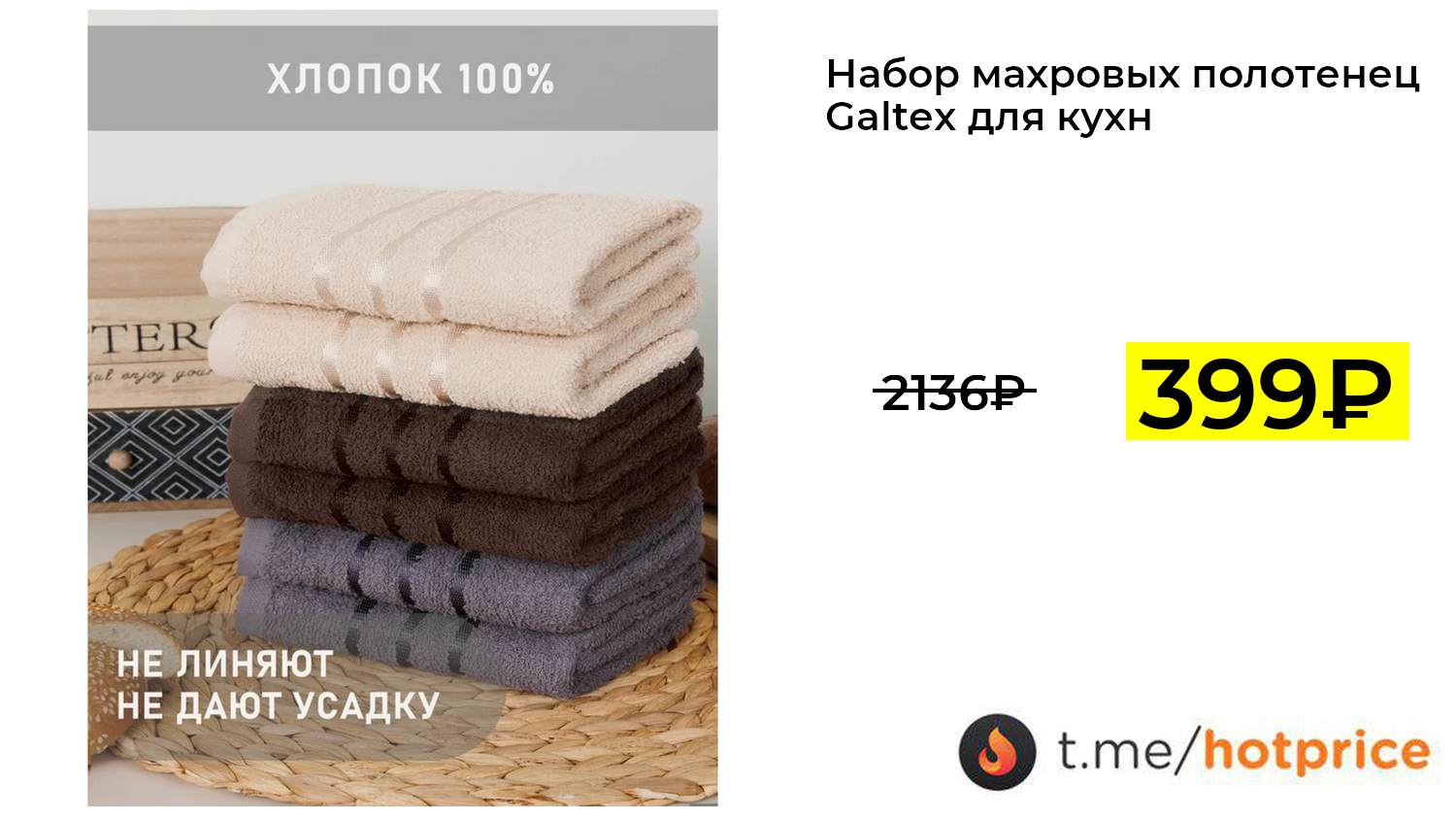 🔹 Набор махровых полотенец Galtex для кухни 6 шт. 30х60 Хлопок за 399₽ ❗️ (везде: 2136+₽)