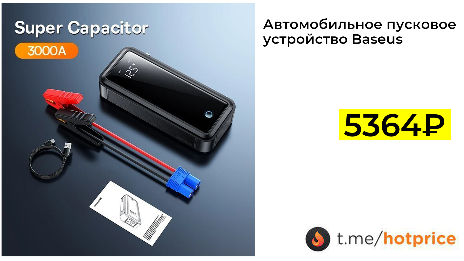 🔹 Автомобильное пусковое устройство Baseus Super 3000A Supercapacitor Car Jump Starter на суперконденсаторах за 5364₽ ❗️