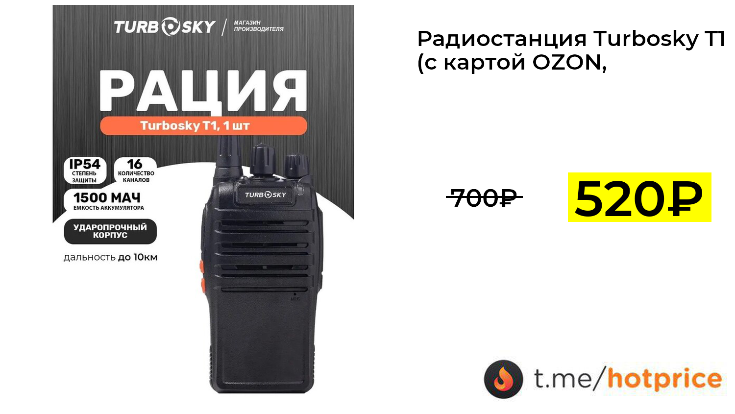 🔹 Радиостанция Turbosky T1 (с картой OZON, с бонусами продавца) за 520₽ ❗️ (везде: 700+₽)