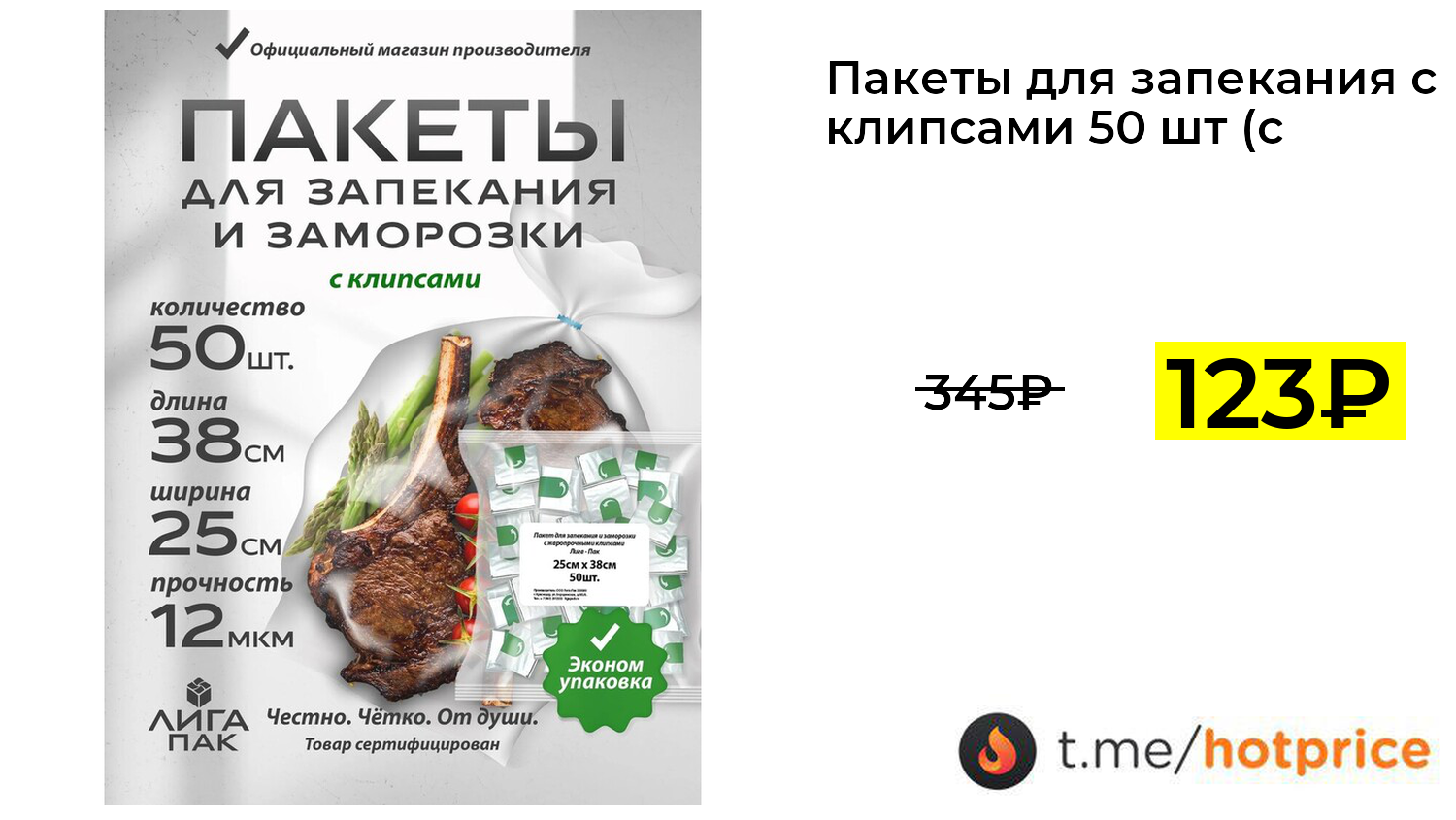 🔹 Пакеты для запекания с клипсами 50 шт (с Озон-картой) за 123₽ ❗️ (везде: 345+₽)