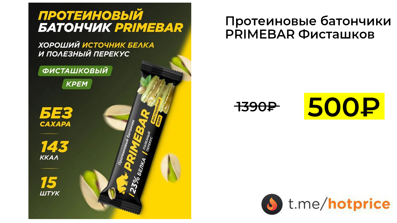 🔹 Протеиновые батончики PRIMEBAR Фисташковый крем, 15 шт * 40 г (с картой OZON) за 500₽ ❗️ (везде: 1390+₽)