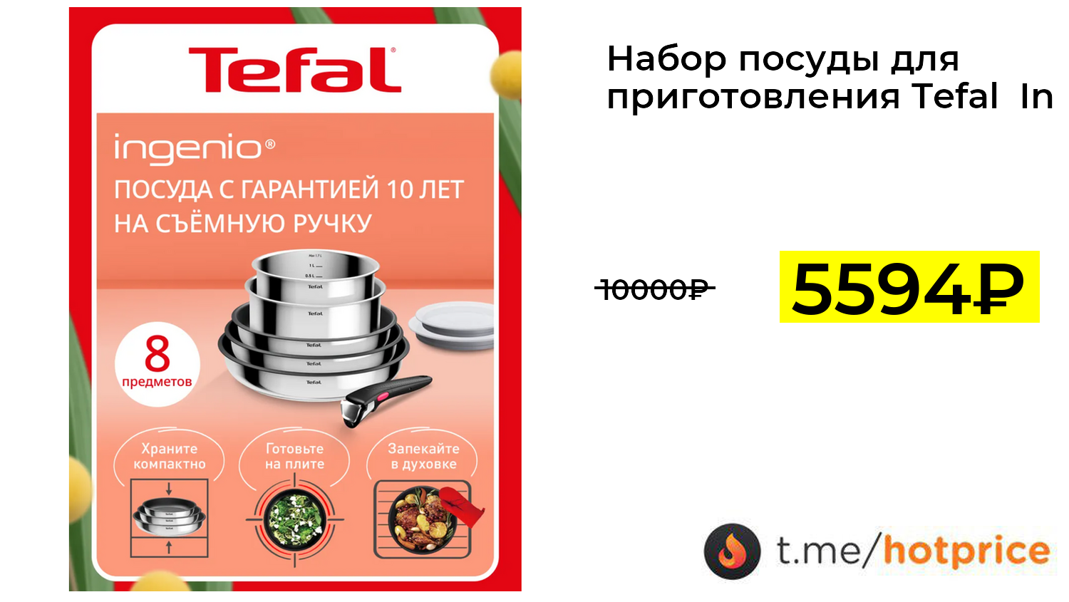 🔹 Набор посуды для приготовления Tefal Ingenio Cook Eat, 8 предметов (с ВБ кошельком, с подпиской) за 5594₽ ❗️ (везде: 10000+₽)