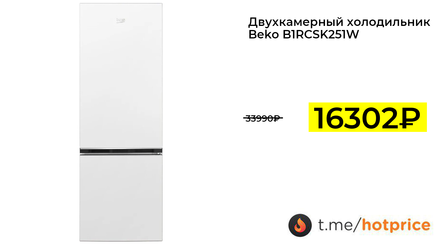 🔹 Двухкамерный холодильник Beko B1RCSK251W, 240 л капельная система. (с картой OZON) за 16302₽ ❗️ (везде: 33990+₽)