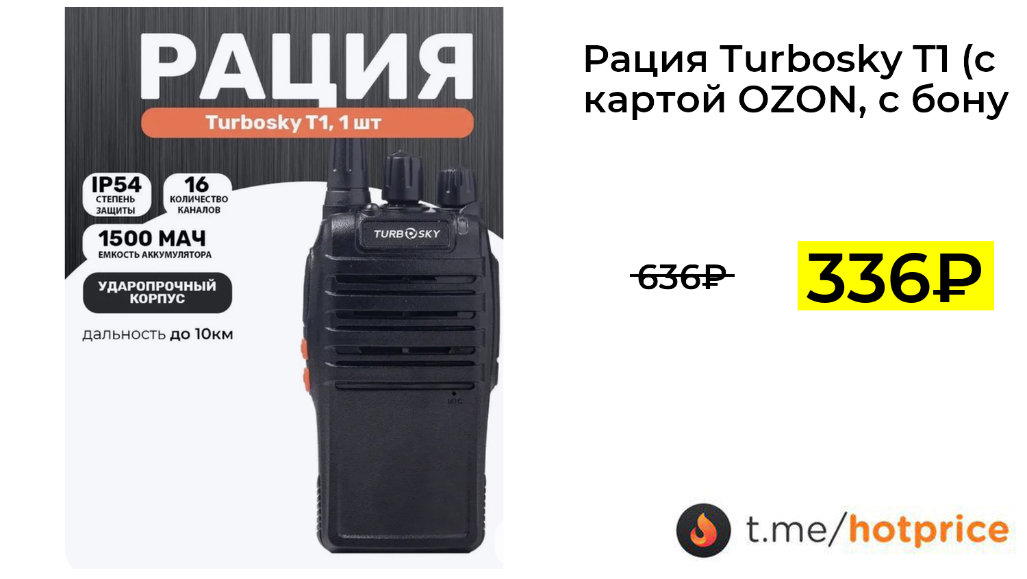 🔹 Рация Turbosky T1 (с картой OZON, с бонусами продавца) за 336₽ ❗️ (везде: 636+₽)