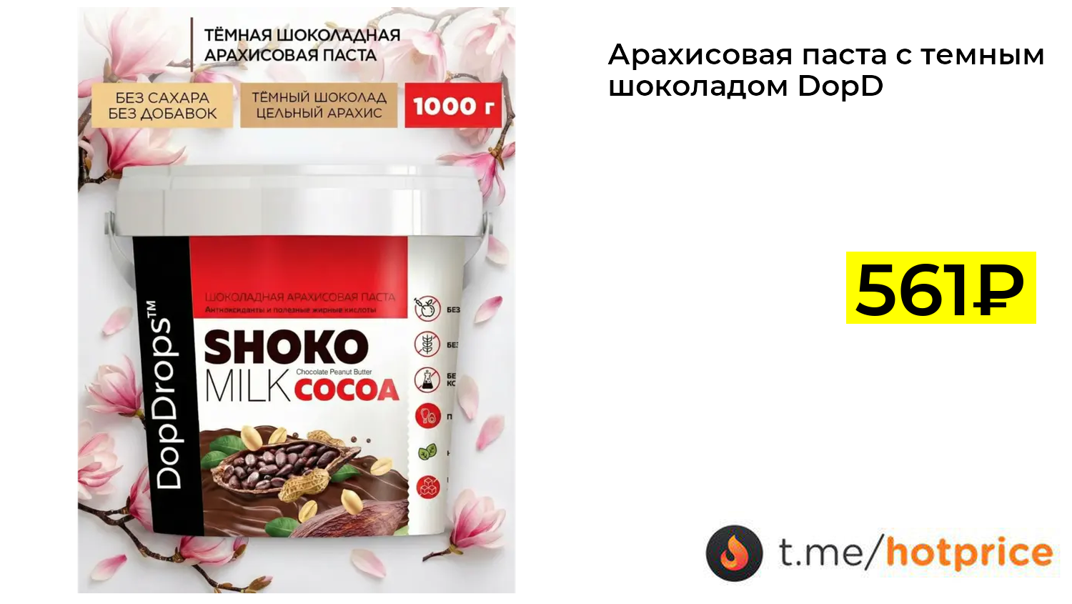 🔹 Арахисовая паста с темным шоколадом DopDrops 1 кг (с ВБ кошельком) за 561₽ ❗️