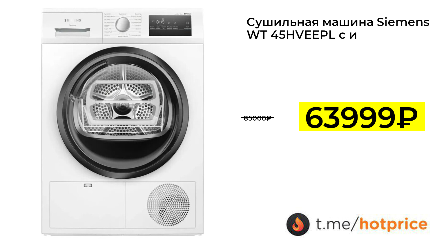 🔹 Сушильная машина Siemens WT 45HVEEPL с инвертором и тепловым насосом, Польша (с картой OZON) за 63999₽ ❗️ (везде: 85000+₽)