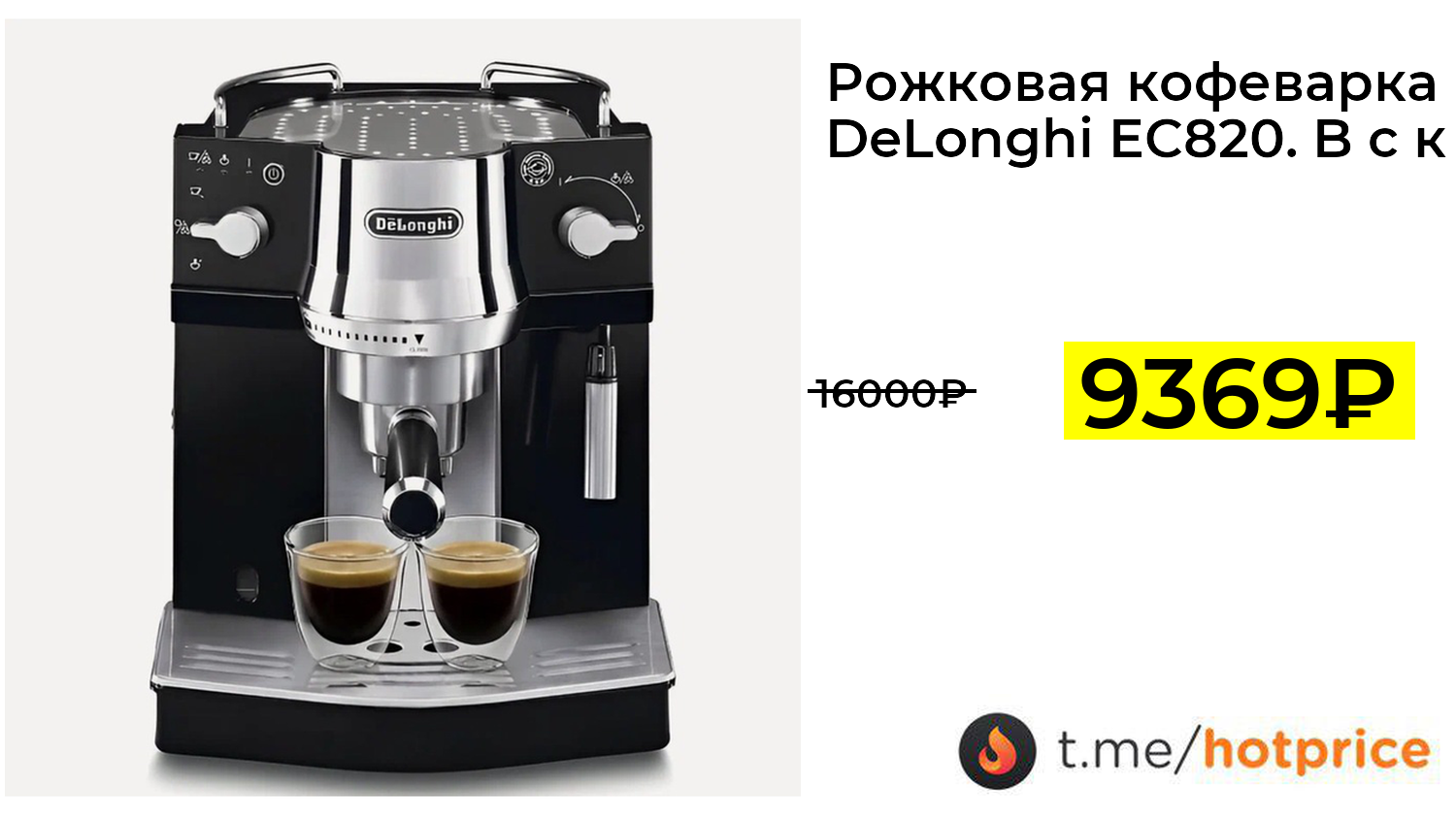 🔹 Рожковая кофеварка DeLonghi EC820. B с капучинатором Черная 15 Бар за 9369₽ ❗️ (везде: 16000+₽)