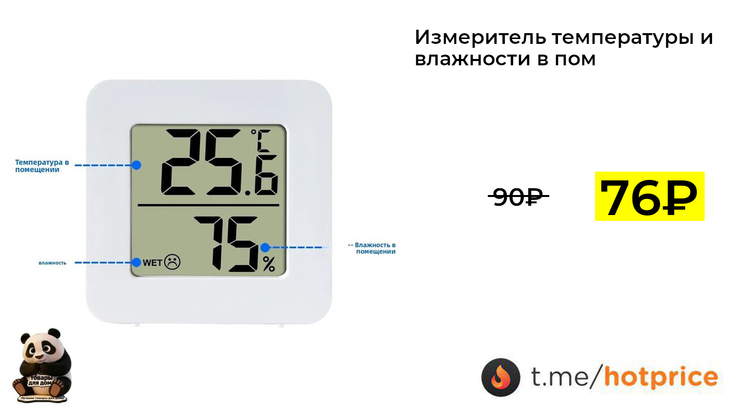 🔹 Измеритель температуры и влажности в помещении (с картой Озон из-за рубежа) за 76₽ ❗️ (везде: 90+₽)