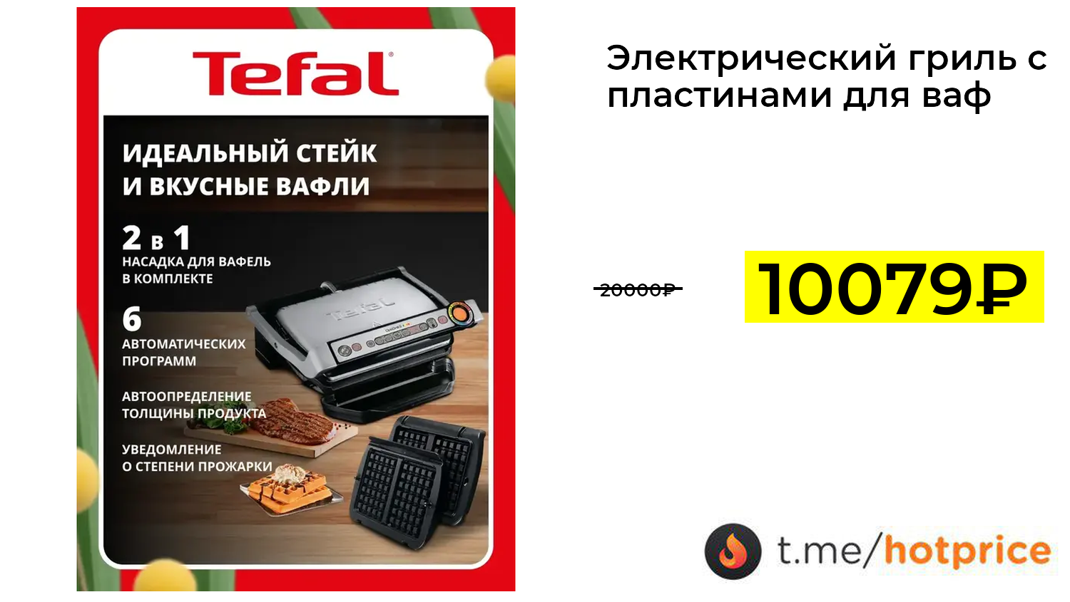 🔹 Электрический гриль с пластинами для вафель Tefal Optigrill+ GC716D12, 2000 Вт (с ВБ кошельком, с подпиской) за 10079₽ ❗️ (везде: 20000+₽)