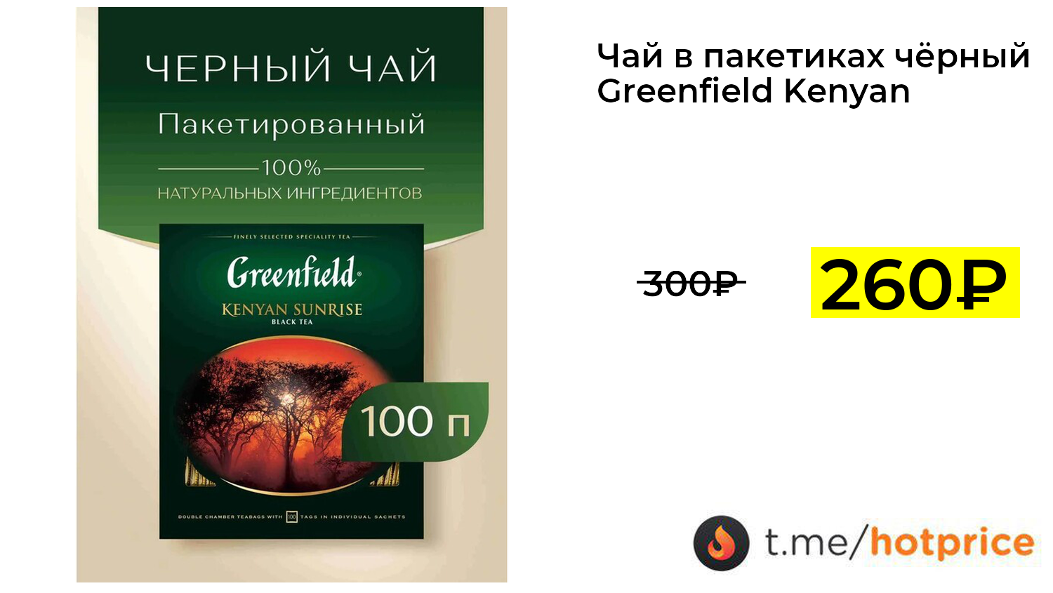 🔹 Чай в пакетиках чёрный Greenfield Kenyan Sunrise, 100 шт (с картой OZON) за 260₽ ❗️ (везде: 300+₽)