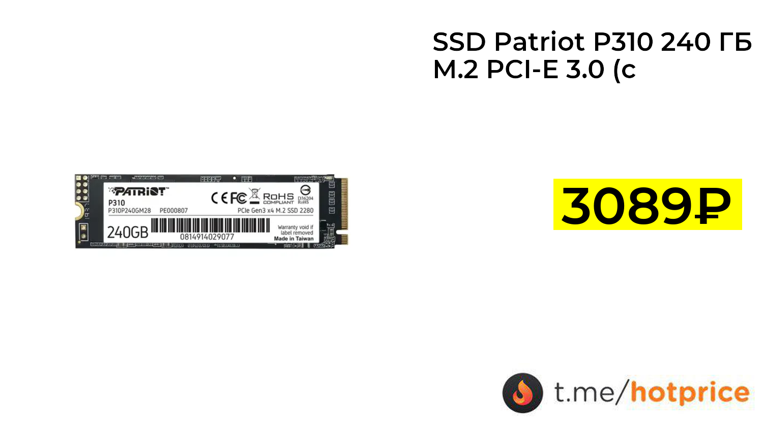 🔹 SSD Patriot P310 240 ГБ M.2 PCI-E 3.0 (с ВБ кошельком) за 3089₽ ❗️