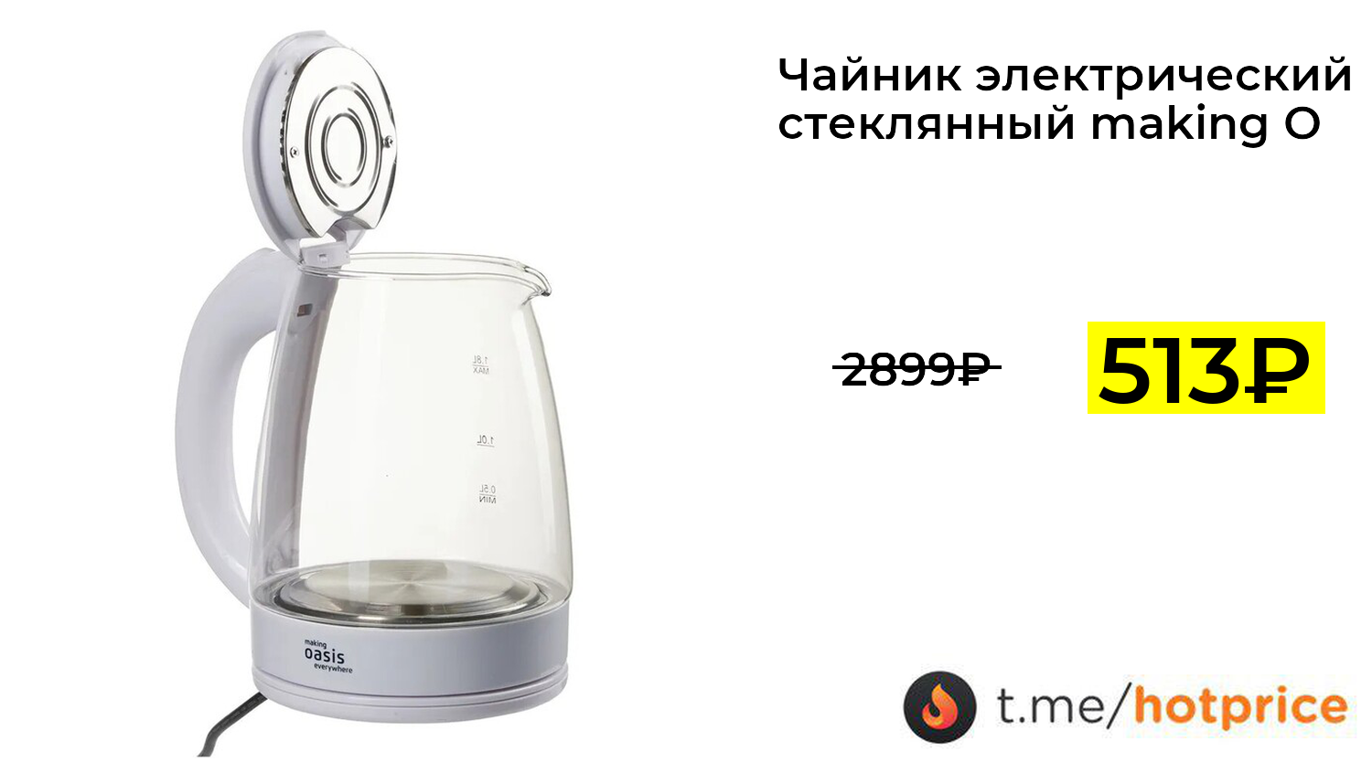 🔹 Чайник электрический стеклянный making Oasis everywhere белый K-8GW 1.8 л, 2000 Вт (с картой OZON) за 513₽ ❗️ (везде: 2899+₽)