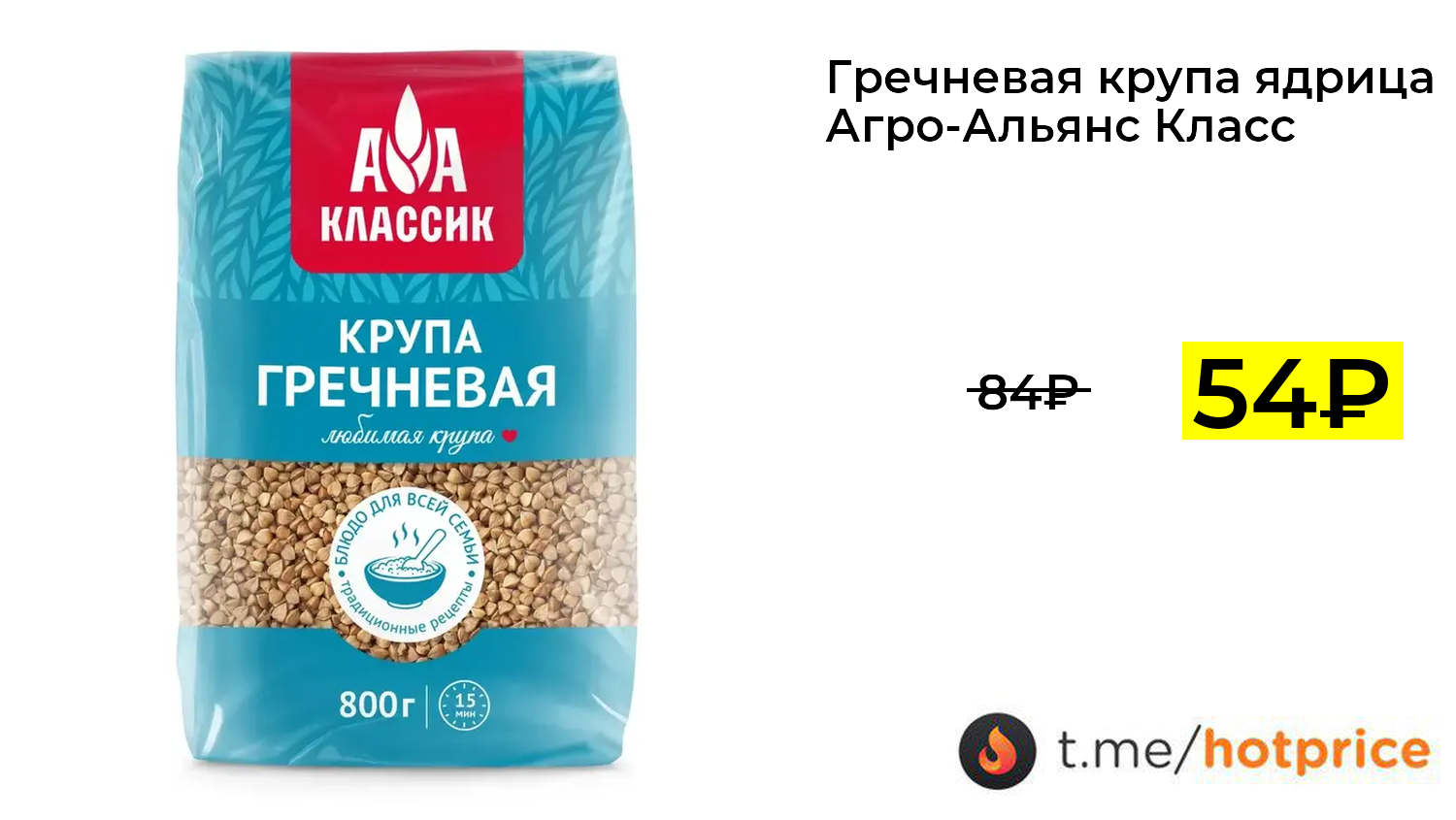🔹 Гречневая крупа ядрица Агро-Альянс Классик 800 г (с ВБ кошельком, с подпиской) за 54₽ ❗️ (везде: 84+₽)