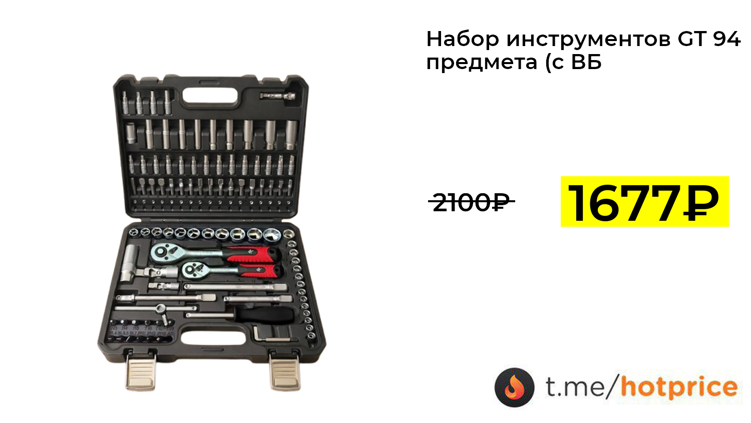 🔹 Набор инструментов GT 94 предмета (с ВБ кошельком и подпиской, без неё 1759₽) за 1677₽ ❗️ (везде: 2100+₽)