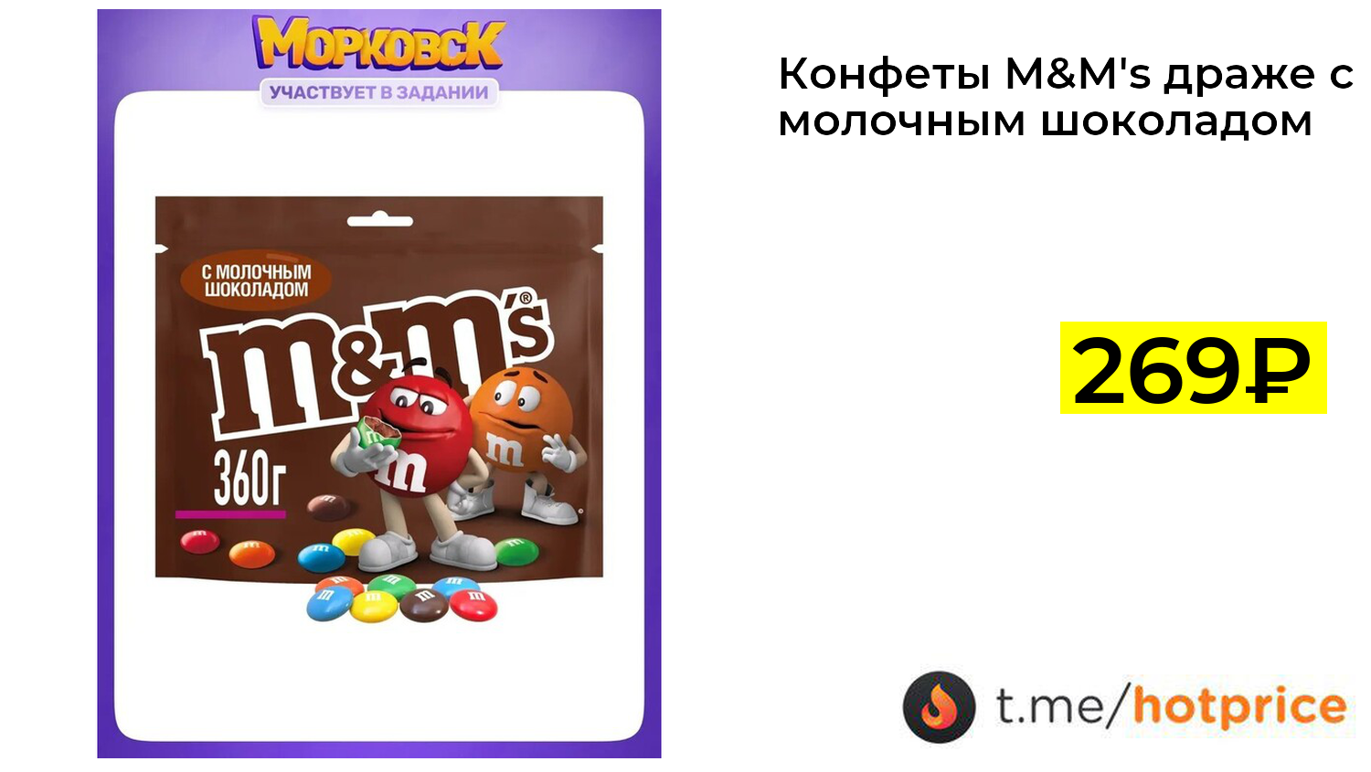🔹 Конфеты M&M's драже c молочным шоколадом 360 г (с картой OZON) за 269₽ ❗️