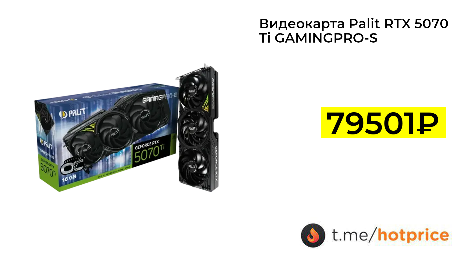 🔹 Видеокарта Palit RTX 5070 Ti GAMINGPRO-S OC 16 ГБ (с макс. кошельком и подпиской) за 79501₽ ❗️
