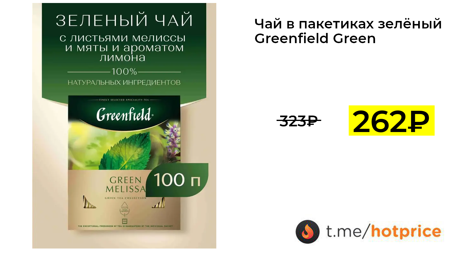 🔹 Чай в пакетиках зелёный Greenfield Green Melissa за 262₽ ❗️ (везде: 323+₽)