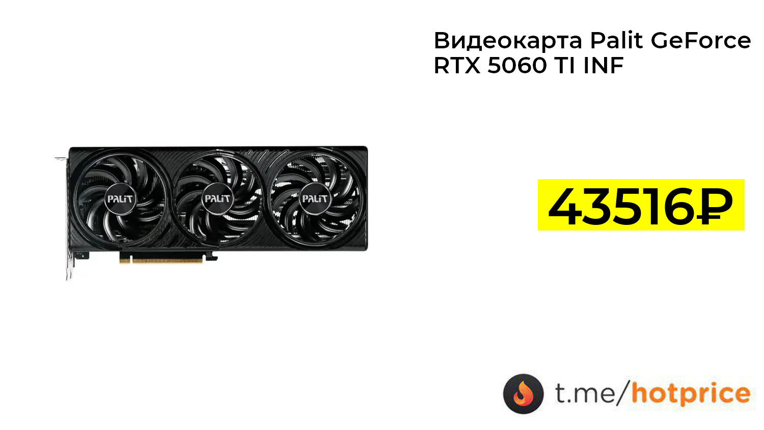 🔹 Видеокарта Palit GeForce RTX 5060 TI INFINITY 3 16ГБ (с макс. кошельком) за 43516₽ ❗️