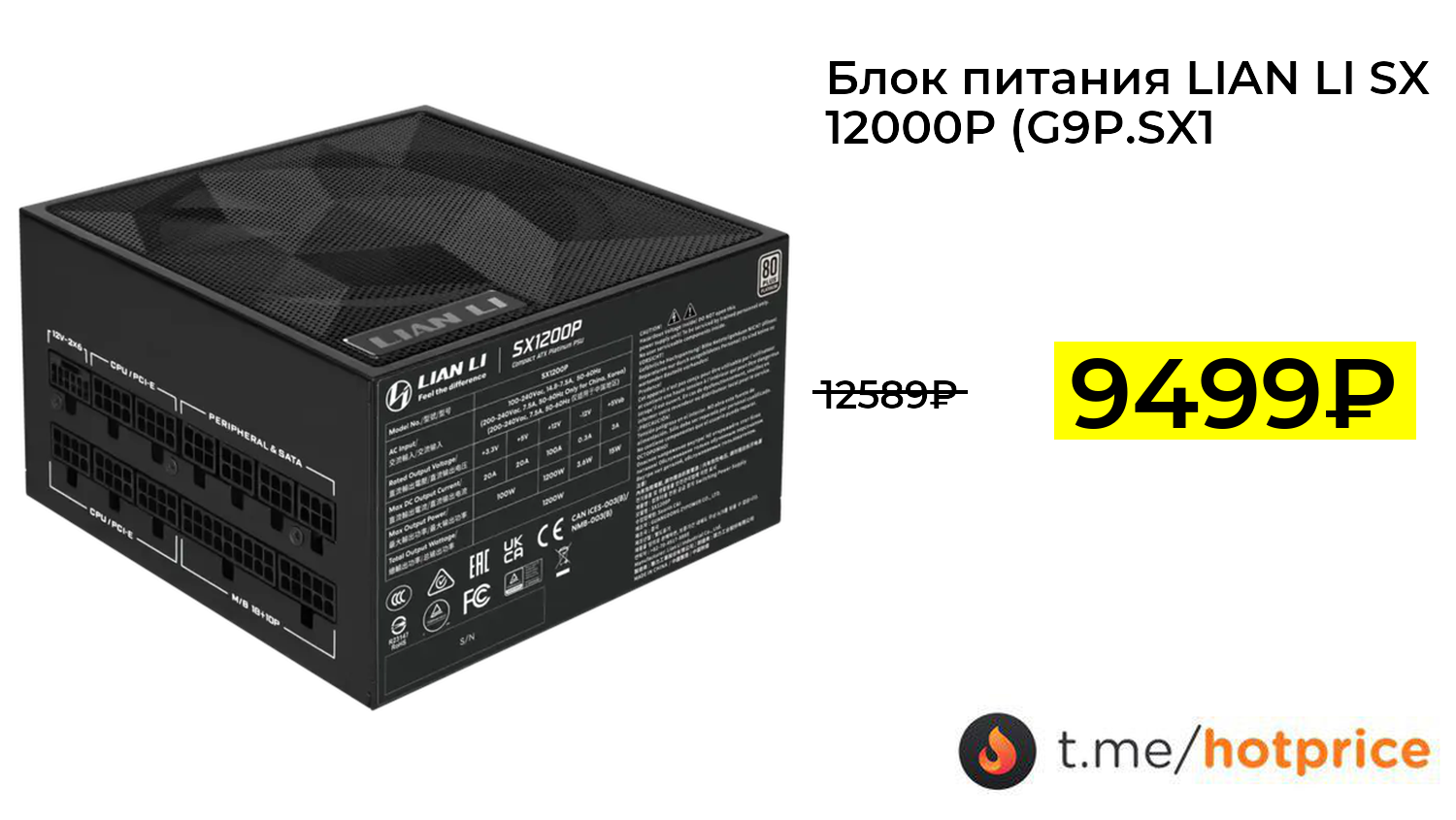 🔹 Блок питания LIAN LI SX 12000P (G9P.SX1200P.B000.RU) за 9499₽ ❗️ (везде: 12589+₽)
