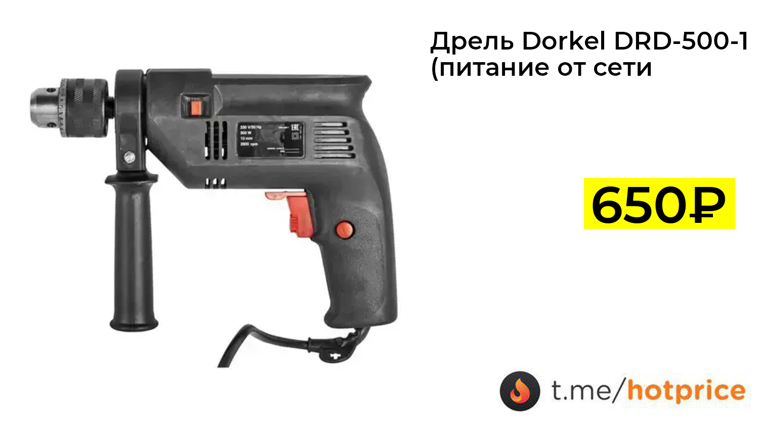 🔹 Дрель Dorkel DRD-500-1 (питание от сети 230 Вольт) за 650₽ ❗️