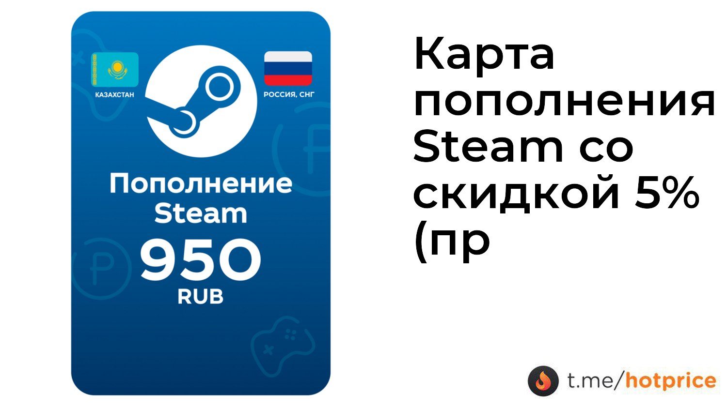 🔹 Карта пополнения Steam со скидкой 5% (примеры в описании) в сервисе gamershub ❗️