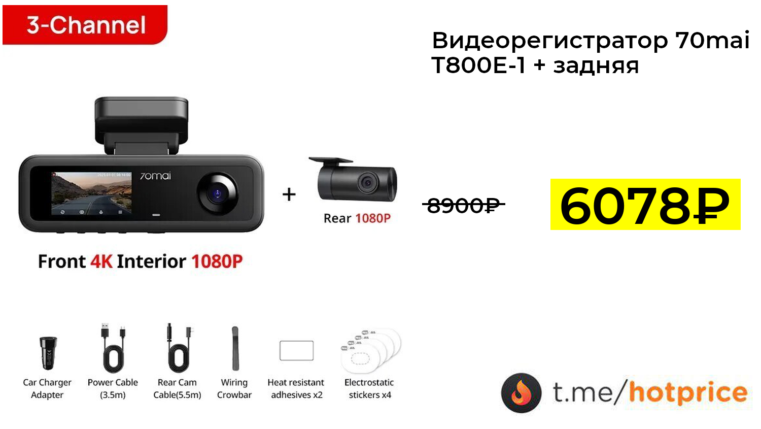 🔹 Видеорегистратор 70mai T800E-1 + задняя камера за 6078₽ ❗️ (везде: 8900+₽)