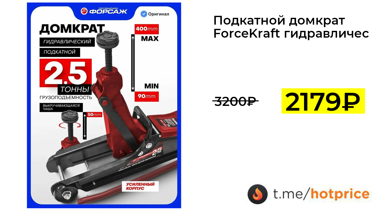 🔹 Подкатной домкрат ForceKraft гидравлический 2,5т 90-400мм (с картой Пэй) за 2179₽ ❗️ (везде: 3200+₽)