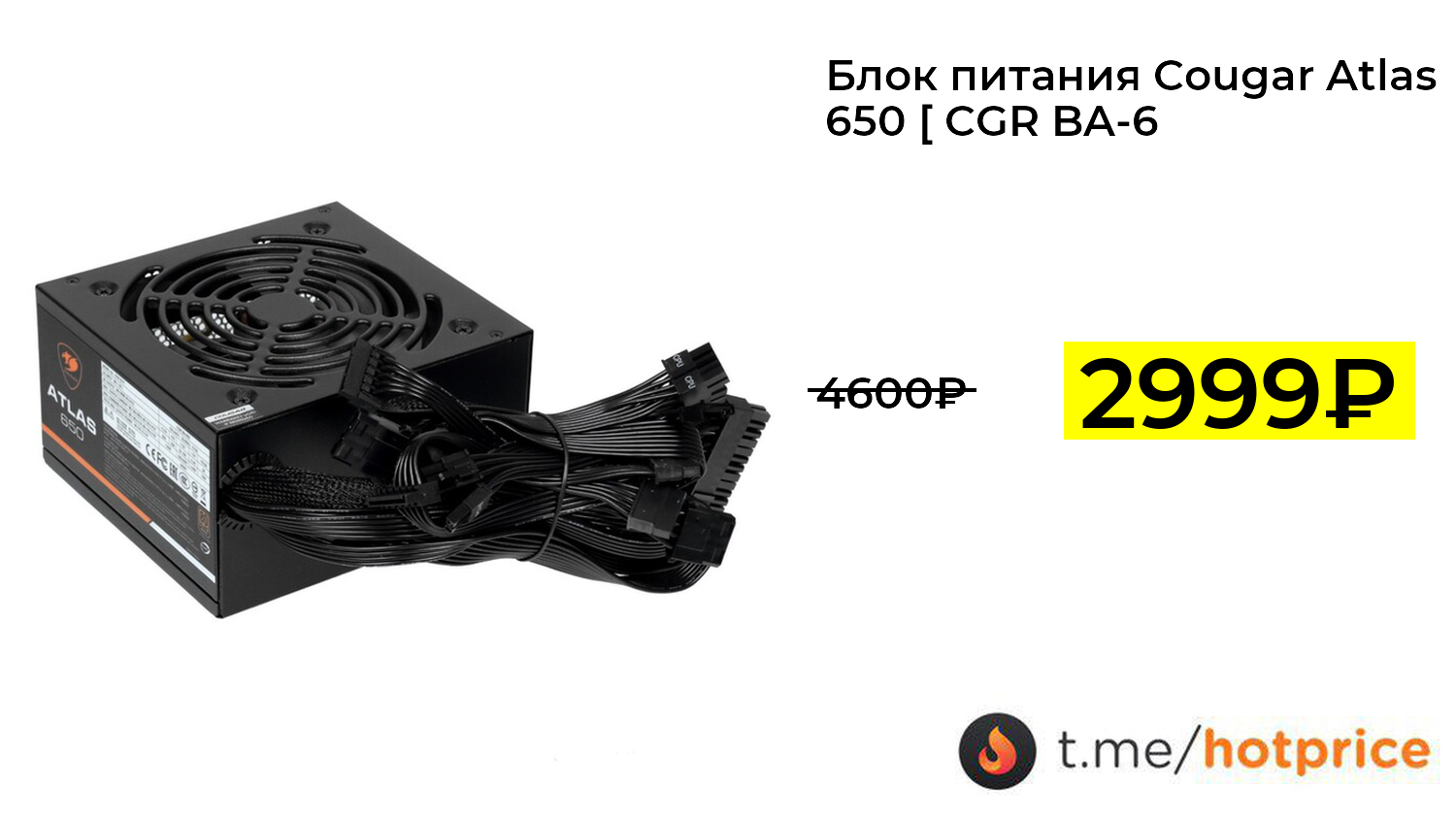 🔹 Блок питания Cougar Atlas 650 [ CGR BA-650] черный за 2999₽ ❗️ (везде: 4600+₽)