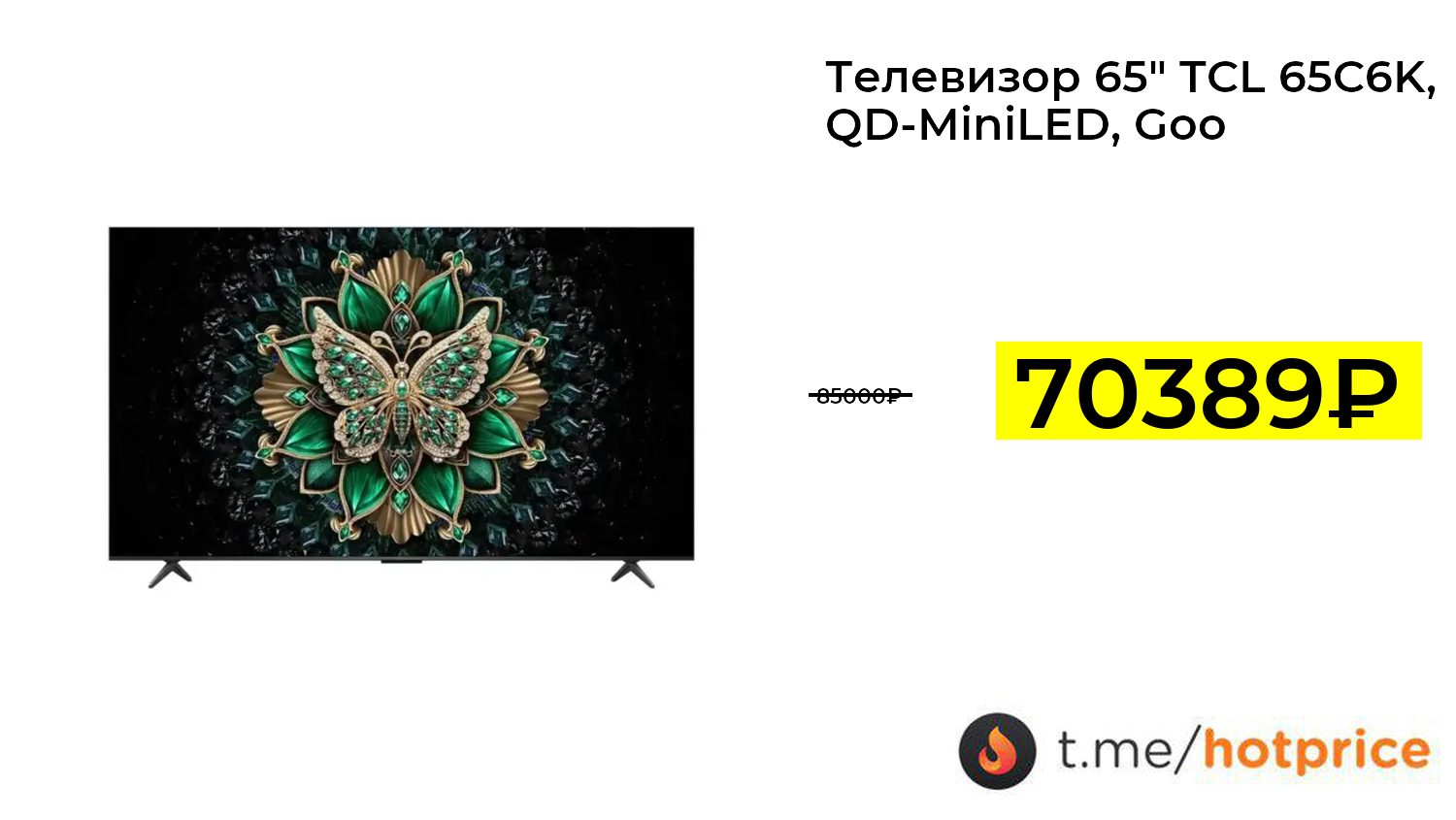 🔹 Телевизор 65" TCL 65C6K, QD-MiniLED, Google TV, HDR (с ВБ кошельком) за 70389₽ ❗️ (везде: 85000+₽)