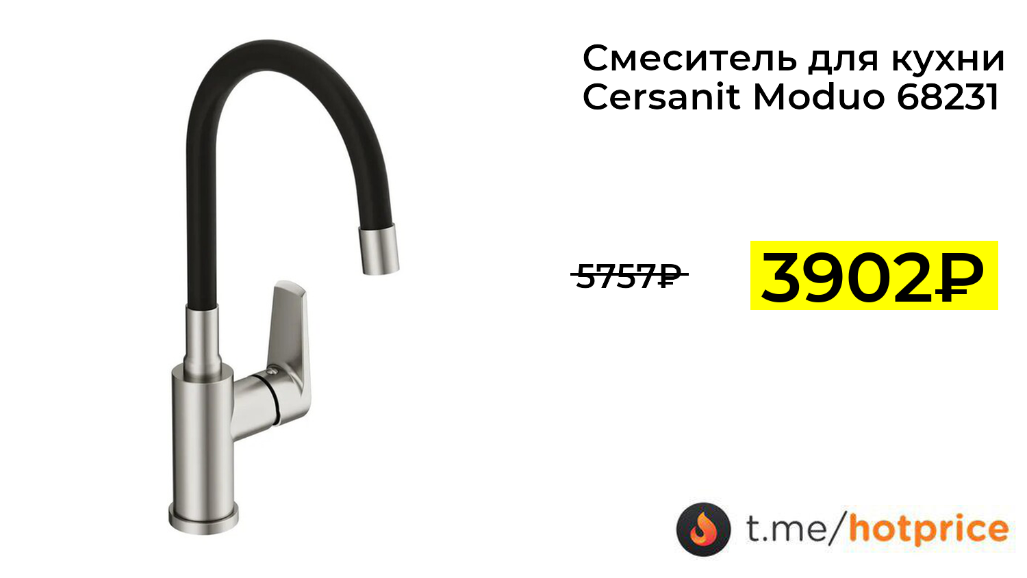 🔹 Смеситель для кухни Cersanit Moduo 68231 с гибким изливом (с картой OZON, зависит от города) за 3902₽ ❗️ (везде: 5757+₽)